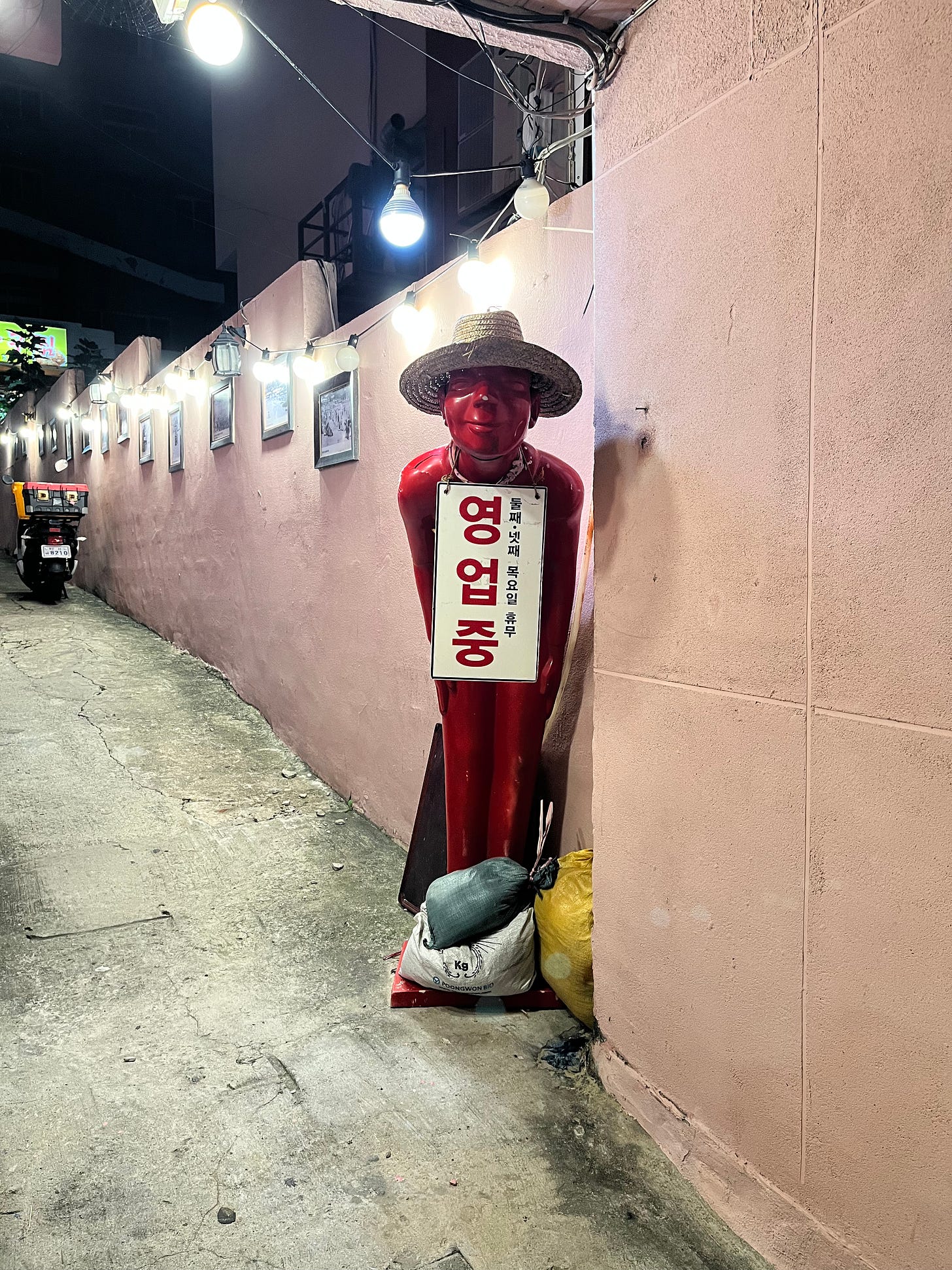 Busan is an hour and forty-minute flight, but getting to Narita, dealing with the mechanics of luggage passport control, and then waiting for your actual flight to Busan is longer than the actual trip to one’s destination. Perhaps because I’m older, traveling disconnects me in a fashion where I have to focus on the procedures of getting from Point A to Point B, the anxiety of the thought of making a mistake, and worse, one where you can’t fix or change. Being trapped by one’s doings and unable to fix them causes me some vertigo-like symptoms.
