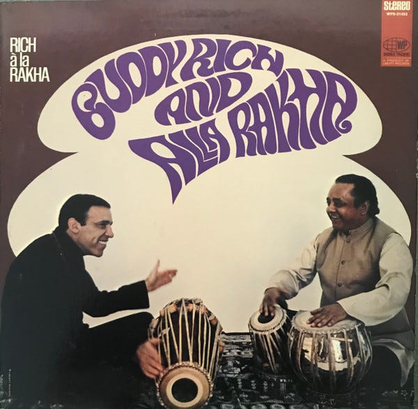 Music is food for me, and I can’t listen to music that I’m not in the mood for, and that includes works that are artificial, yet I admire the ability of an artist to make up a world that one leaves their world for forty minutes or so. Some go to music for an aural adventure or a place they don’t know about, and some go for a familiar sound. But I like the stuff that takes me on a journey within myself, and only art (music, visuals, film, reading) is the vehicle to take me from one point to another. Hal Blaine and Buddy Rich/ Alla Rakha do that for me.
