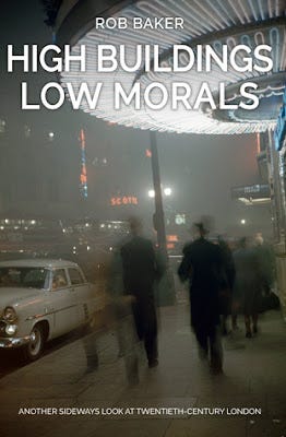 To quote Noël Coward, from the back cover of Rob Baker's book, "I don't know what London's coming to - the higher the buildings, the lower the morals." High Buildings, Low Morals is, for me, a classic book. I first discovered Baker's obsession in 20th Century London through his blog Another Nickel in the Machine. Eventually, using his blog as the source, he made two books. Beautiful Idiots and Brilliant Lunatics, and this one, High Buildings, Low Morals. Both are excellent, as well as his blog and, in my studies, the two best books on contemporary (20th century) London culture. Baker is amazing that his identity disappears, and what comes up is the subject matter of his interest: the linkage between London theater, social life, film and stage stars, and gangsters. These two books remind me of Kenneth Anger's Hollywood Babylon, but the big difference is that Baker is a thorough historian in his approach to matching the dots in that urban landscape. He has the genius to match individuals with a narrative much bigger than the figures because it's a web that holds the city together.