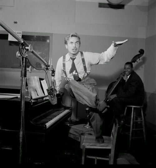 An even more obscure presence in the world of jazz and hipster-dom is Harry ‘The Hipster’ Gibson. Like my dad, he was Jewish but obsessed with the Black American culture of his time. A masterful boogie-woogie pianist and singer, he had his vocabulary in the extreme Hipster category.
