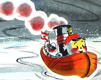 I often think about my life as “Little Toot, ” the tugboat child who all the other tug boats feel is useless because he (I presume it’s a he for some reason) prefers to play and make figure 8s in the bay. Eventually, the tugboat community forces Little Toot to leave, and he finds himself adrift in the vast sea. I imagine myself in that role quite easily. At one time, I was working at a bookstore, having a great time there, and eventually let go due that I love being around books, and I just wanted to play, which was my actual work there from my point of view. Nevertheless, some disagree with my philosophy, and I was sent out adrift in the world of my imagination.