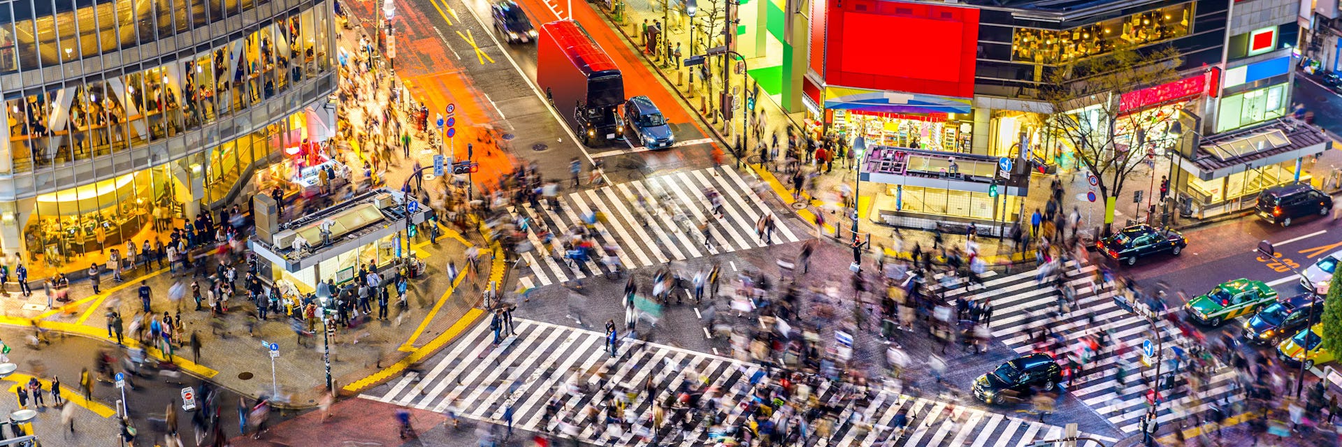 Shibuya Station opened in 1885, and the crossing became a landmark in 1932. In 1973, it turned into a “scramble,” allowing pedestrians to cross in every direction. Today, up to 3,000 people can cross at once.