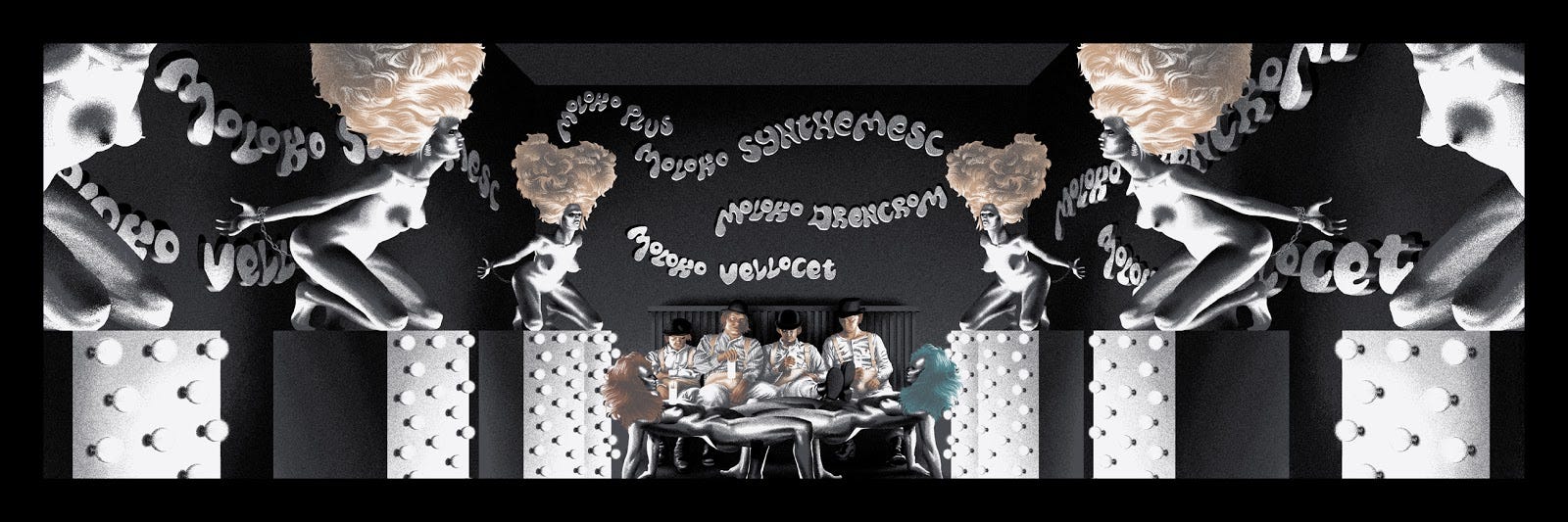 I love the idea of a contained environment, for instance, the Korova Milk Bar, where one goes to get loaded on milk laced with drugs, where one can drink the milk with knives in it. It will sharpen you up. I went there to take mescaline, and as I sat on a couch resembling a woman’s ass-cheeks and back, I let my mind wander into a shapeless world and waited for my ego to break down. That will never happen. Nevertheless, I left Korova and went to the Owl Drug store on Beverly and La Cienega to look at the displays of shampoo, hair creams, combs, and all sorts of beauty products. I couldn’t believe my eyes, and I felt I saw these objects in a new ‘enlightened’ light. “If the doors of perception were cleansed, everything would appear to man as it is, infinite. For man has closed himself up. Till he sees all things through narrow chinks of his cavern.” The essence of moving among the buildings in the night, clearly I was looking for happiness, but one knows that “happiness would lose its meaning if it were not balanced by sadness.”