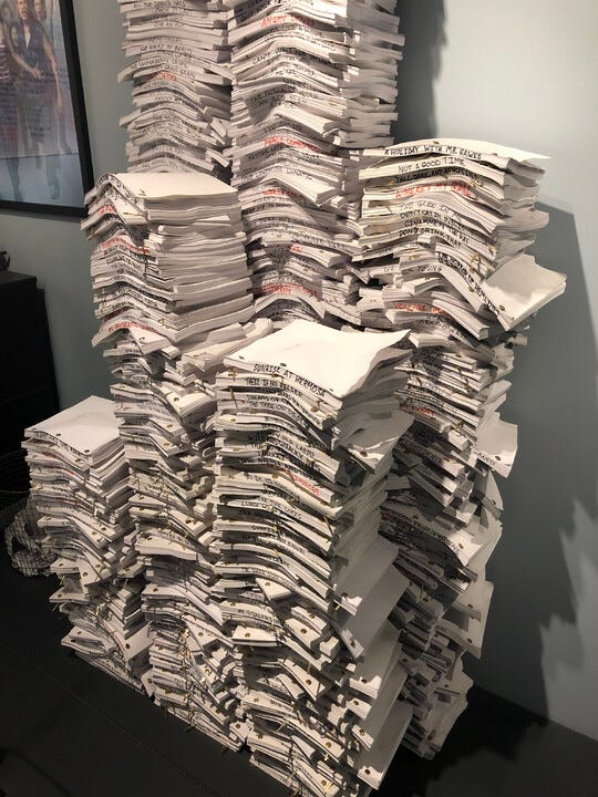 The struggle to do something meaningful is such an uphill journey that I’m exhausted just by looking across from my living room. I willed myself to be behind the laptop on my writing desk, and I swore to the Gods above (and below) that I won’t move until I finished this one scene for my film script. Which, of course, is an existential series of long moments because who knows if something like this would ever get made or produced. Even with the Strike on, I feel hopeless about spending my time putting letters on a computer screen that will eventually be ignored. Our script is 145 pages long, and it is common knowledge that a script that large will be rejected. Still, I want the script as long as Marcel Proust’s In Search of Lost Time.